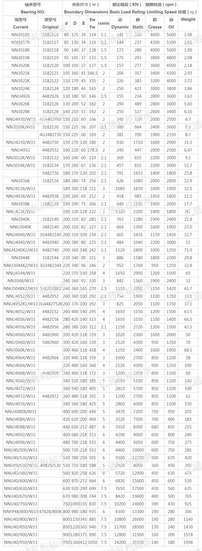 雙列圓柱滾子軸承參數(shù)軸承型號(hào)Bearing NO.現(xiàn)型號(hào)CurrentNN3016KNN3017K...